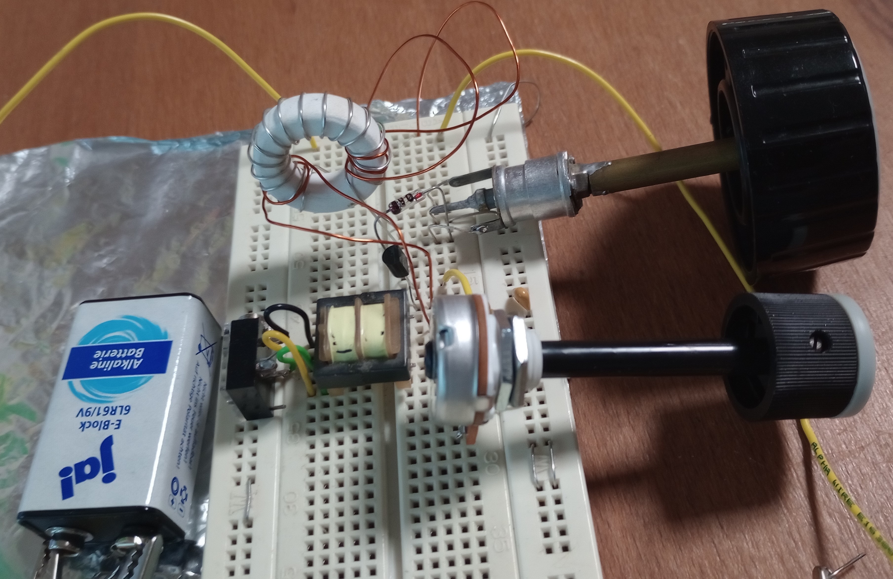 also nichts für Ungut, aber ich halte den Aufbau eines KW-Audions auf einem Steckbrett für nicht optimal, zumal wenn man gewisse Eigenschaften bei Schaltungsänderungen ableiten will. Die Forderung nach kurzer Leitungsführung ist allerdings erfüllt.