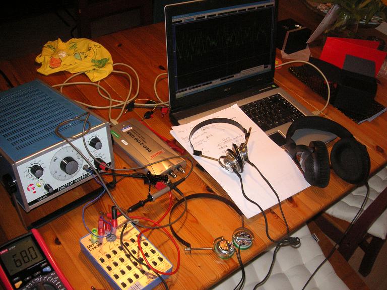 hier mein Messaufbau für die Kopfhörerempfindlichkeit.