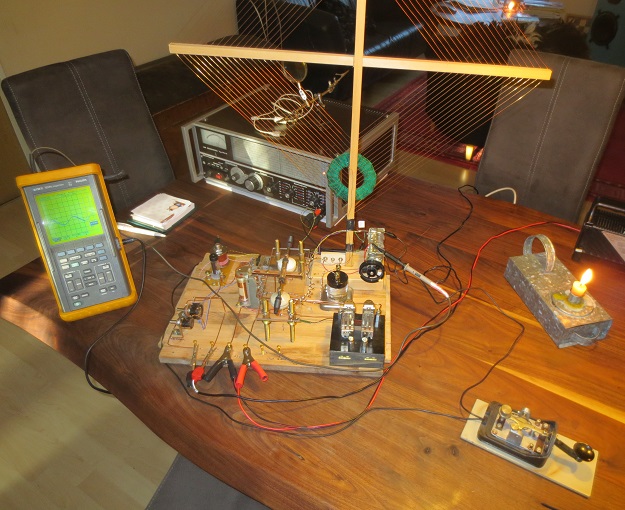 Deine 10-30m sind kein Problem....auch durch geschlossene Wände. Klar so empfindlicher Dein Empfänger wird, um so kleiner kann die Sendeleistung sein. Dies kannst Du ja kontrollieren mit Deinem HF- Mess-Sender. Die 4-6V schaffst Du schon....Deine Türklingel muss Du dann halt so frisieren, dass Deine HF- Amplitude, gemessen am Empfänger, ausreichend ist. Willst Du auf einen Schwigkreis verzichten und so wie Klaus, den ersten Marconi Aufbau umsetzen? Also einen offenen Dipol verwenden? Wenn ja, ist das Messen der HF am Empfänger nicht ganz so einfach (Signalform und Frequenz). Meine 600-1600kHz kannst Du halt richtig als gedämpfte Welle sehen ( Amplitudenmaximum im Oszi) ...auch ohne Quentschen.