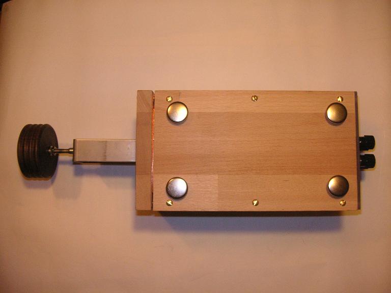 3. Der Cu-Kasten ist im unteren Bereich nicht 100% winklig geworden. Beim Einpassen in das Holz gab es Probleme. Im Endeffekt hat aber alles einigermaßen geklappt. Halt FuBa! Fummeln und Basteln. Die Mutter für die Spulenbefestigung habe ich im Holz verschwinden lassen. Ein Fräser mit 20 mm brachte ein gutes Ergebnis. Das funktioniert aber nur wenn man min. 1mm Kupferblech verwendet. Bei dünneren Cu- Blechen sollte man die Schraube durch das Holz ziehen, (Mech. Festigkeit) wie bei Robert Weaver zu sehen. Sein Cu- Blech hat eine Stärke von nur 0,65mm. Dieses ist für das Biegen der Abwicklung und für die Kontaktierung bestimmt auch einfacher zu handhaben. Ich habe für die Abstimmung ein reines Gewindeprinzip verwendet. Die Gewindestange sollte noch auf Kupfermaterial umgebaut werden. (Abd.4) Falls es nötig wird, kann ich hier aber auf Roberts Mechanik umbauen. Meine Abstimmplatte ist dementsperchend rund und etwas größer. (Durchmesser bei gleicher Oberfläche). Um Spiel im Gewinde auszugleichen, sollte noch eine Spiralfeder zwischen Absstimmknopf und Gehäuse eingefügt werden. Hier weitere Bilder,...noch bin ich optimistisch die 17Km zu knacken. Ich hoffe, dass meine handwerklichen Fähigkeiten ausreichend sind um die nötige Präzision umzusetzen. Abschließende Polierung....mit einem neuartigen speziellen Reinigungsmittel aus dem Fahrradladen
