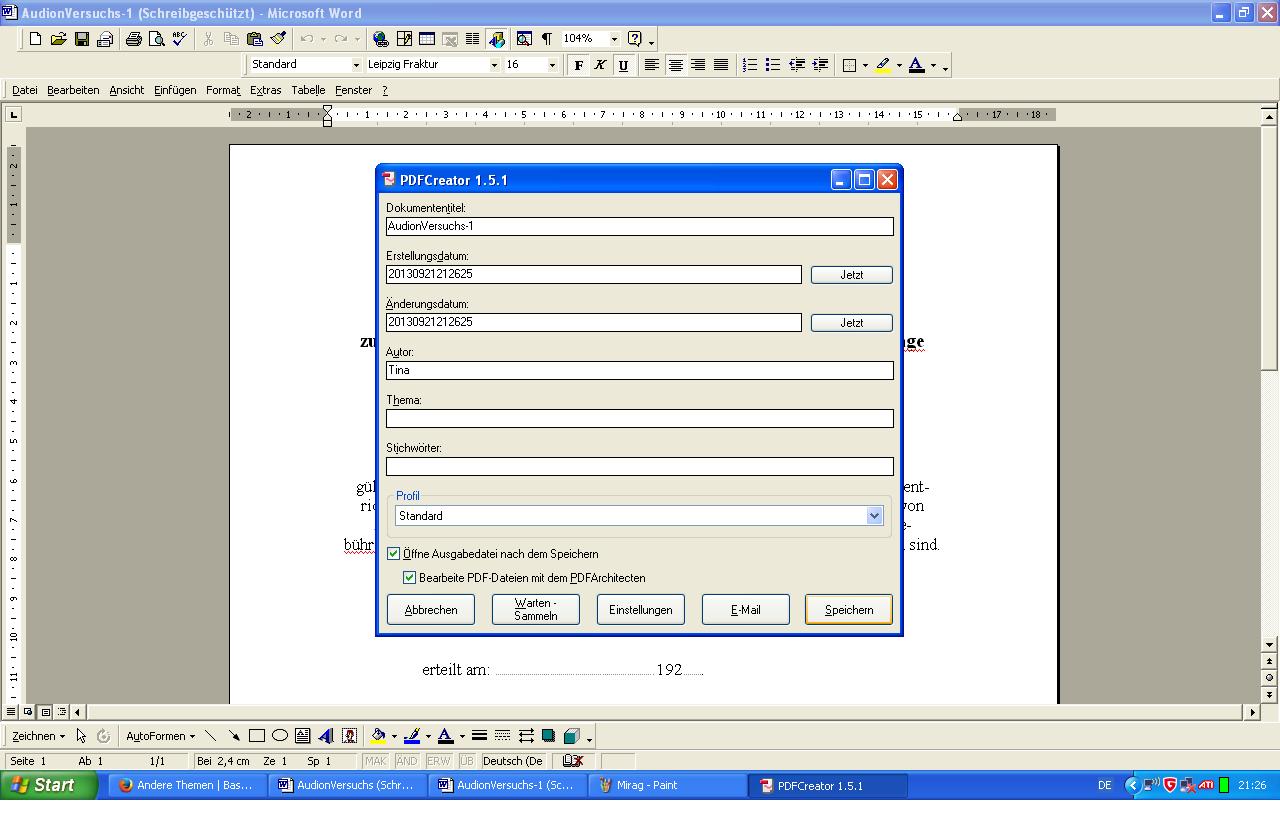 Dann auf Speichern drücken und Ablageort aussuchen.