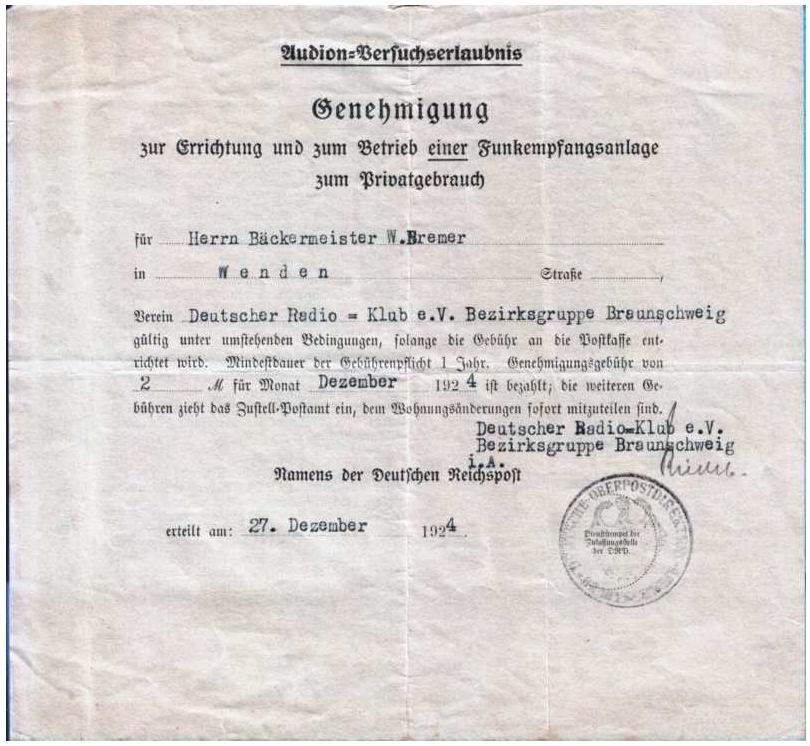 fein...ich freue mich auch das es so schnell geklappt hat. Übrigens habe ich von der Audionerlaubnis erfahren, als ich mich mich mich mit den Büchern von Hanns Günther und Hans Vatter beschäftigt habe. Ich habe mich immer wieder gefragt wie so eine Erlaubnis wohl aussieht..