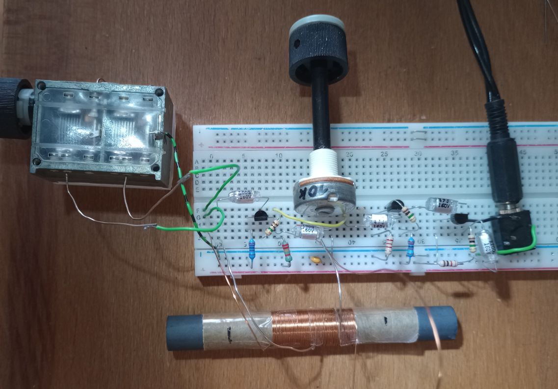 Zweiter Nachtrag: Q1 ist nun wegen höherem Eingangswiderstand in Kollektorschaltung. R3 hat einen Wert der 1mW NF Leistung am Ohrhörer erlaubt. C4 hat 1uF für bessere Basswiedergabe. Die TA7642 Versorgungsspannung am Punkt Va ist 631mV bei größter Trennschärfe. Die gemessene Stromaufnahme der gesamten Schaltung ist 3,3mA.