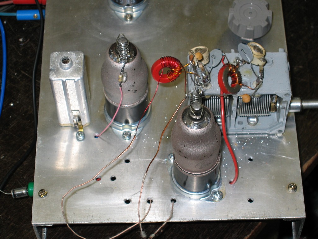 kleiner Tipp: Versuche bitte, alle hochfrequenzkritischen Leitungsführungen ("heisse Spulenenden", Steuergitter-Zuführungen, Anoden-Ableitungen...) so kurz wie möglich zu gestalten. Im KW-Bereich macht sich u.U. jeder Zentimeter Draht bemerkbar - meistens negativ!