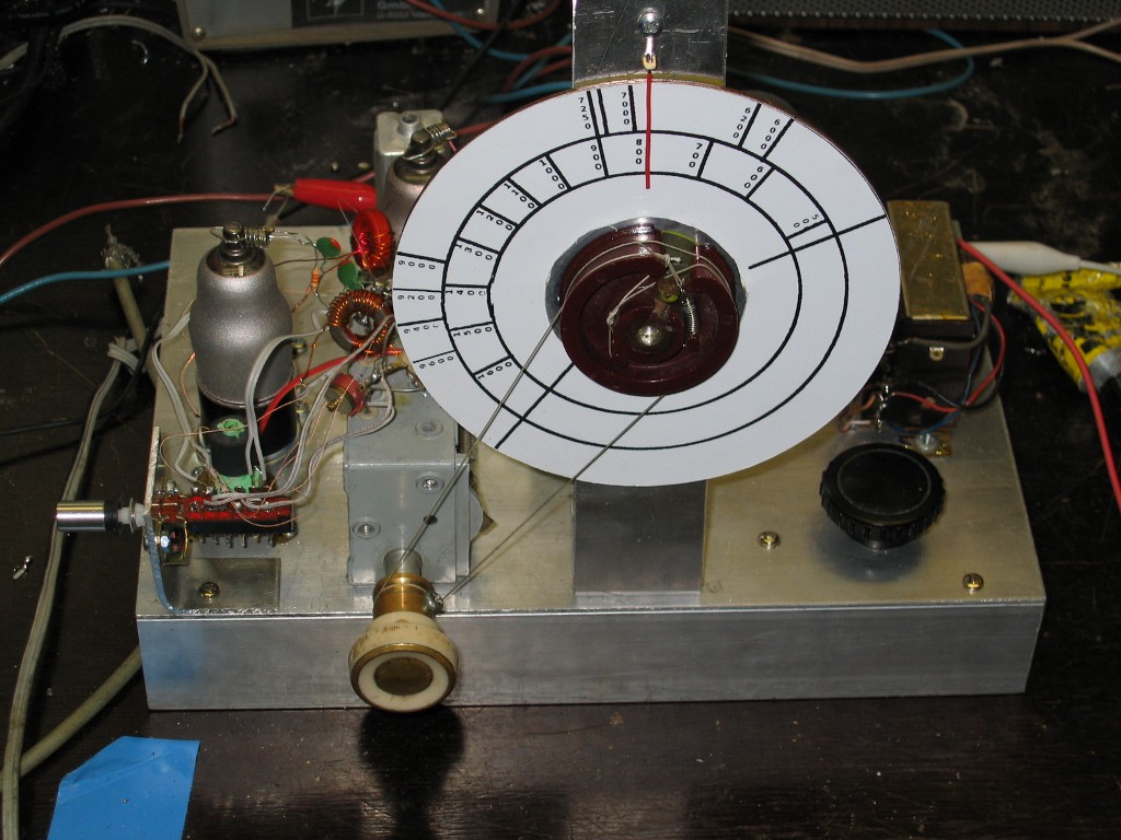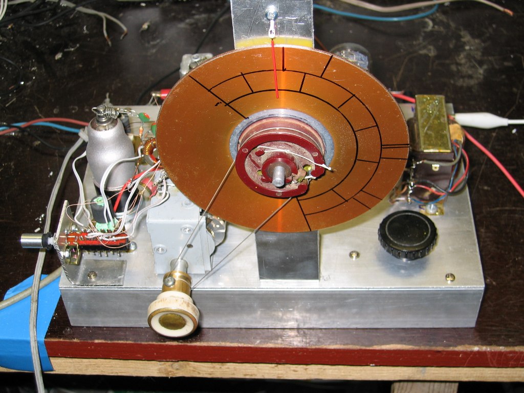 Hallo Nobby. Danke für den Tip. Nürnberg ist leider ein paar Meter zu weit weg.Aber wer weiß, vielleicht klappt es ja mal wieder zu einem Heimspiel vom Club. Einstweilen habe ich das Gerät so gelassen.Nur die Filter noch einmal abgeglichen und den Arbeitspunkt der R212 etwas verschoben. Es reicht jetzt momentan für Zimmerlautstärke über einen guten Lautsprecher. Heute Abend habe ich mich mit der Sender Skala beschäftigt.Die Scheibe einer alten Festplatte hat sich irgendwie angeboten. Da zu der Skalen Antrieb aus einen alten Radio.Und natürlich ein wenig Messing und ein Neffe der mit einer Drehbank umgehen kann. Die Beschriftung ist noch provisorisch.Die eigentliche Skala wird mit dem PC gemacht und dann aufgeklebt. Mal schauen...