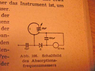 Hallo an die Detektor-Spezialisten, im alten UKW-FM Buch von H. Richter (1950) habe ich einen sehr einfachen Absorptions-Frequenzmesser für den UKW Bereich gefunden (Bild). Daraus will ich versuchsweise einen Flankendetektor bauen. Wenn sich zwei, drei Sender sauber trennen lassen, wäre das fürs erste schon ganz gut.