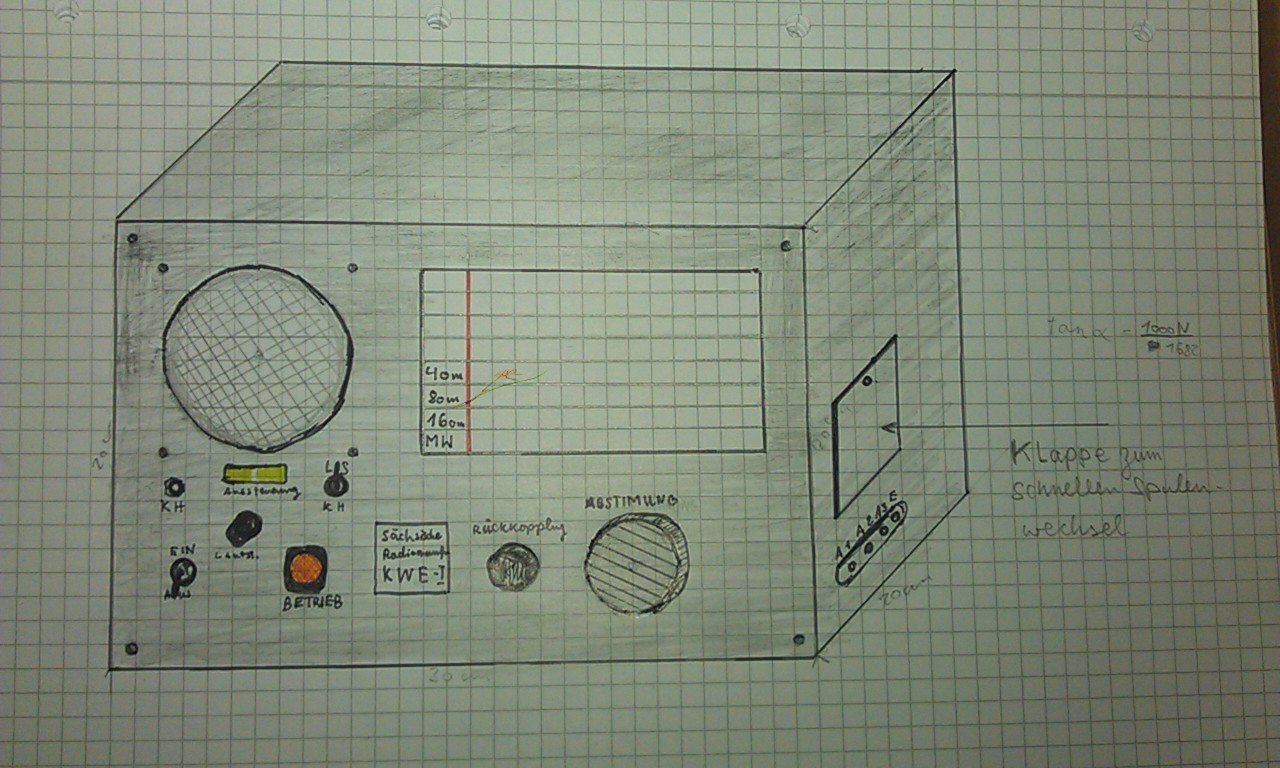 Damit mißt man die Anodenspannung der 'oberen' ECC81-Triode und die Einstellsspannung für die Rückkopplung (= ca. Anodenspannung der unteren Triode). Wie man an der Frontseiten-Abbildung sieht, gibt es abweichend vom gezeigten Schaltbild noch eine fünfte Schalterstellung. Damit messe ich die Betriebsspannung, die ich am Netzgerät einstelle.