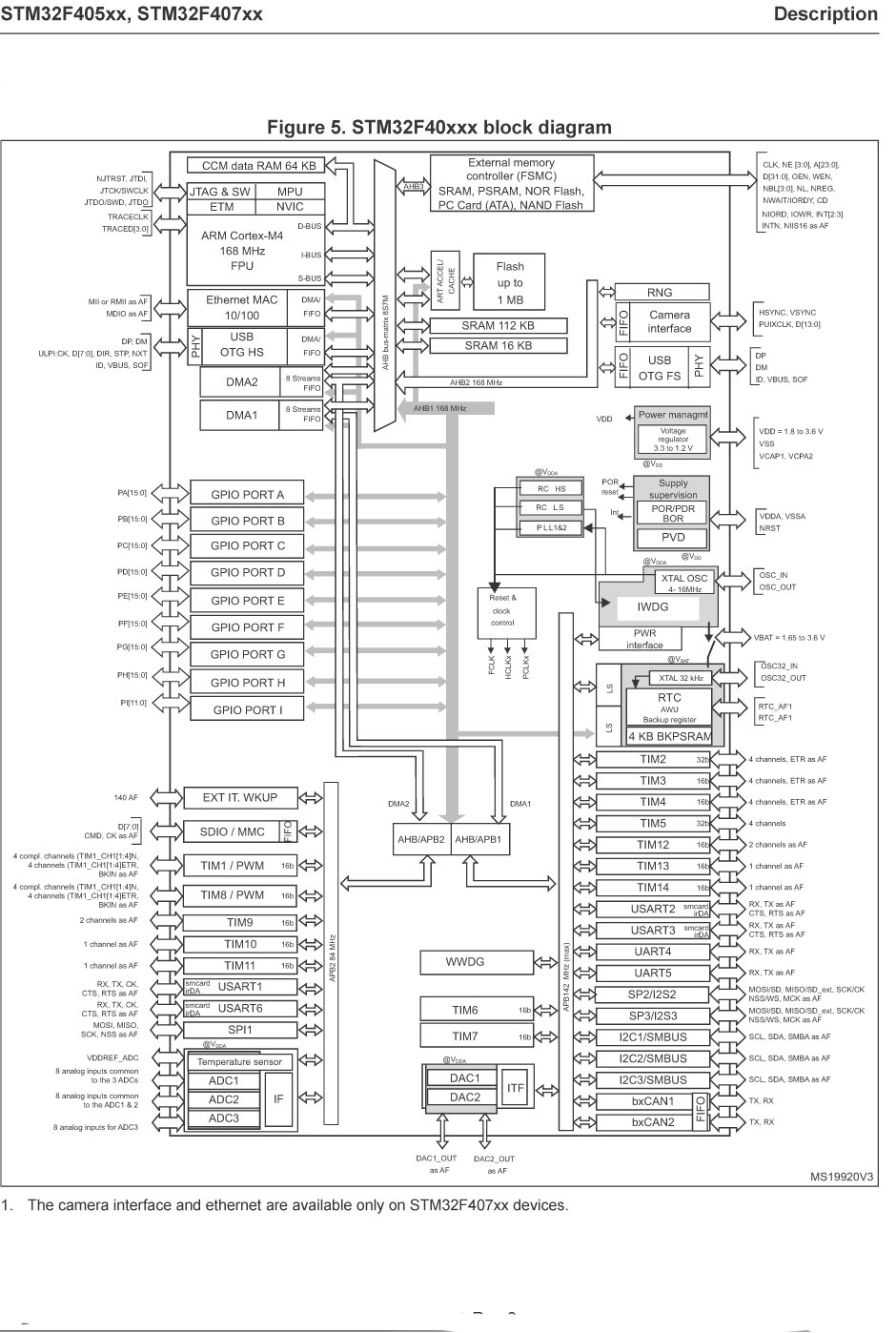 Auch das Blockdiagramm aus dem Datenblatt zeigt das wir es hier eher mit einem DSP als mit einer normalen MCU wie zum Beispiel dem ESP8266 zu tun haben. Ob das Rechenwerk des Cortex M4 bei gleichem Takt wirklich mehr Arbeit schafft als ein ESP8266/ESP32 werden wir später in einem Benchmark-Test sehen.