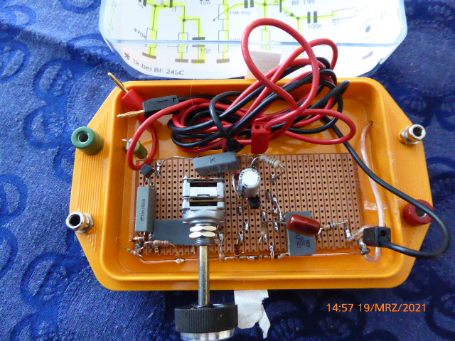 Deine Fotos erinnern mich an meinen ersten wirklich brauchbaren Empfänger, der irgendwann Mitte der 60er entstanden sein muß. Es war ein MW Reflexaudion nach Hagen Jakubaschk, der hier im Osten so etwas Ähnliches war, wie Heinz Richter im Westen. Die Schaltung arbeitete mit einem Ge-Transistor GF105, der seinerzeit 10 Mark kostete und damit das Taschengeld eines ganzen Monats verschlang. Der Empfänger war in einem ähnlichen Gehäuse untergebracht aber nicht so ordentlich auf einer Leiterplatte montiert, wie bei Dir, sondern war ein wirres freitagendes Knäul. Er funktionierte prächtig und das Gehäuse erfüllte jahrelang seinen Zweck und der heiligt ja bekanntlich die Mittel. Ich habe schon lange vor, diese Schaltung nochmal aufzubauen und Deine Fotos sind Inspiration, es noch Wirklichkeit werden zu lassen, bevor der analoge Rundfunk endgültig Geschichte ist.