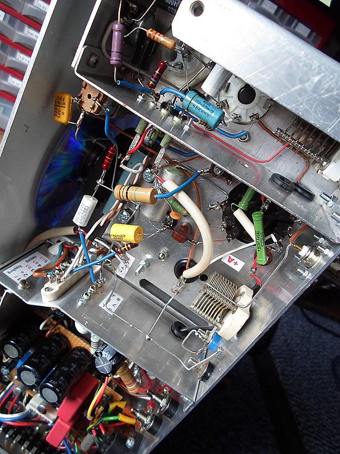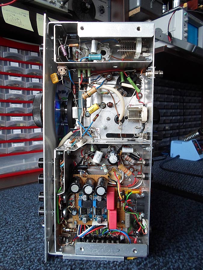nicht mehr ganz neu, aber noch voll funktionsfähig. Ich habe vor ca. 10 Jahren diesen Zweikreiser in die Aluguss-Box eingebaut. Der Empfangsbereich geht von Mittelwelle bis ca. 17 MHz. Aufgeteilt auf 3 Bereiche, Anzeige auf 540° gedehnt. Vorstufe und Audion DL67, Kopfhörerverstärker 2x DF67, hochohmiger KH. Die Anodenbatterie hat noch immer volle Spannung, nur der Heizakku musste in der Zeit mehrfach nachgeladen werden. Bei Batterie-RK-Empfängern sollte mit der Heizbatterie auch die Anodenbatterie abschaltbar sein, sonst entlädt sie sich über den Querstrom des RK-Potis. Das Gerätchen hat mich schon einige Male in den Urlaub begleitet und macht richtig Spaß.