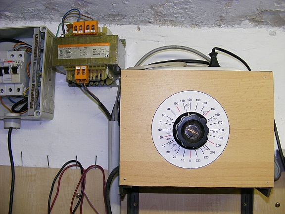 Der Regeltrafo versorgt das Gleichrichtergerät, das mit der abenteuerlichen Lampe.