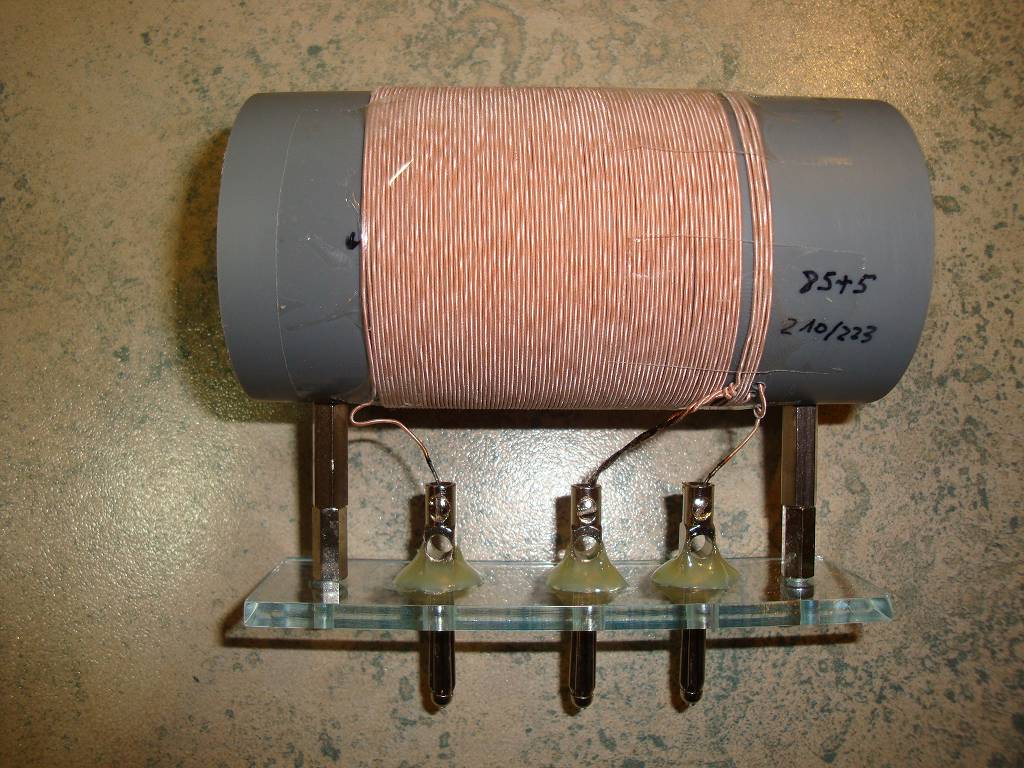 Nun arbeitet das Gerät ja mit einer Koppelspule von einigen Windungen. Bei den Zylinderspulen wurde diese am Ende gewickelt. Der Windungsdurchmesser war an jedem Punkt der Spule gleich.