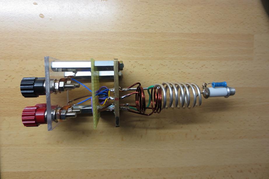 Aus diesem Grund und da sich der Taschenresonator noch in einer Testphase befindet, ist der Aufbau ein bisschen improvisiert. Ein paar Stehbolzen, Lochrasterplatine, Makrolonabdeckung für die Buchsen, konnten schnell montiert werden. Das Ergebnis zeigt die hohe Güte des Kreises. Wenn ich dieses Minniprojekt abgeschlossen habe, will ich einen NF- Röhrenverstärker für meine Radioexperimente bauen. Anschließend geht es an den UKW- Empfang mit Spannungen < 50V.