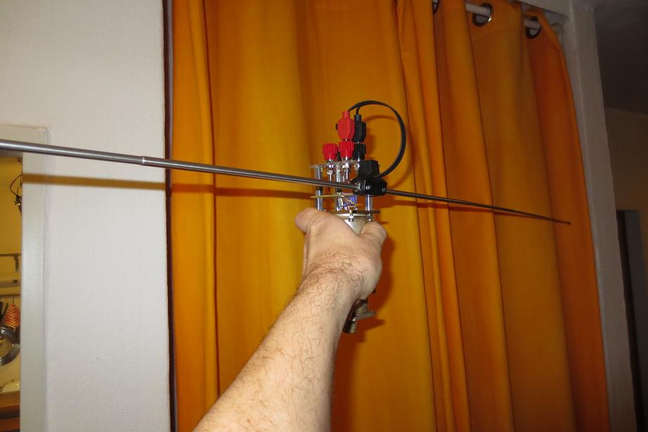 Pluspol:Die optimale feste und enge Verbindung des Dipols mit dem Empfänger ermöglicht Dir die gewünschte Mobilität. Vermutlich wirst Du damit manchmal in der Öffentlichkeit verwundert wahrgenommen. Wenn man Spaß und Freude am gelungenen Eigenbau hat, dann stört es nicht, für etwas komisch gehalten zu werden.