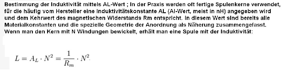 Du kannst damit nach dem im Datenblatt angegebenen AL- Wert des Ferritmaterials, direkt die Windungszahl bestimmen. Es gibt Ferritstäbe und Ringkerne zu kaufen. Der Vorteil von diesen Kernmaterialien ist gegenüber einer selbstgewickelten Zylinderspule, die geringere Windungszahl und damit brauchst Du viel weniger Draht. Das ist bei 10mH sehr entscheident.
