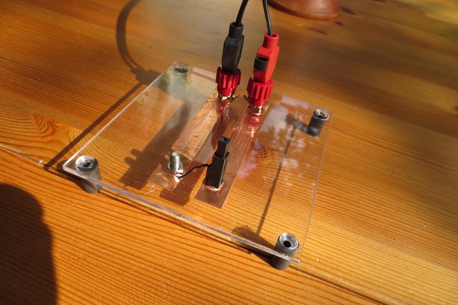Bei 10-13mm hatte ich gute, im oberen KiloOhmbereich liegende Widerstände zwischen den Elektroden. Ob das auf die Empfindlichkeit des Gerätes Einfluss hat, bleibt noch abzuwarten und wird in weiteren empirischen Versuchen ausgelotet.