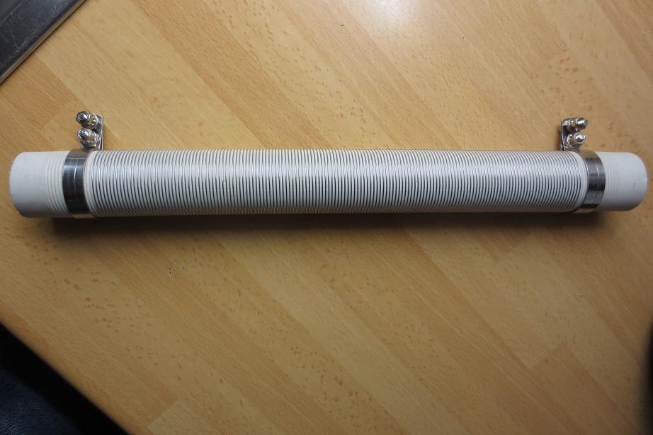 Als Schwingkreisspule nehme ich eine alten Drahtwiderstand auf Porzellankörper. Mit dem habe ich schon mal einen MW- Schiebespulendetektor gebaut. Dann kann ich die Frequenz mit der entsprechenden Windungszahl über einen Mittelabgriff verändern. Die Funkenstrecke wird am Anfang max. 5mm betragen. Der Windungsabstand ist dafür ausreichend. (Funkenstrecke in mm x 2 / Anzahl der benötigten Schwingkreiswindungen = Windungsabstand) Damit liegt man auf der sicheren Seite, wenn die Spule einlagig ist.