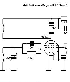 die Schaltungen von Hr. Kainka sind bewährte Konstruktionen. Er hat tolle Projekte von 6- 60V vorgeschlagen. Am Schaltbild des MW- Audions ist mir vielleicht ein Fehler aufgefallen. Die Rückkopplungsspule die auf jeden Fall gegenläufig zur Schwingkreisspule aufgebaut oder angeschlossen werden sollte (gegenläufiger Wicklungssinn) ist nicht an der Anode der ersten 2SH27L angeschlossen. Ich würde die Audionröhre wie die zweite Röhre verdrahten. Siehe mein korregierter Skizzenausschnitt. Die Anode der Audionröhre hängt im original Plan nicht an 18V ... sondern an Minus der Heizspannung. Das kann eigentlich nicht sein. Probier mal meinen Vorschlag aus.