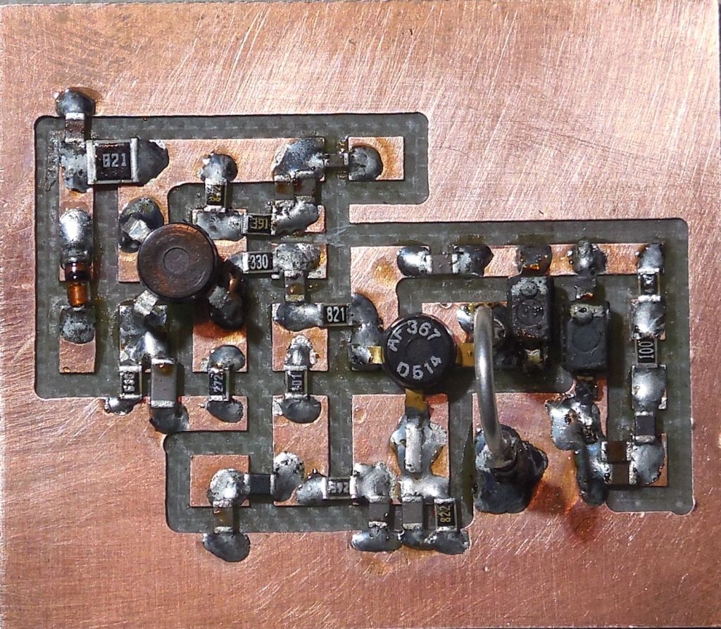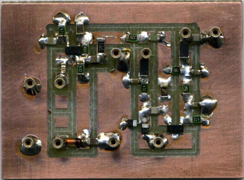 vor langer Zeit habe ich mal in der Zeitschrift Elektor einen Beitrag gelesen, wobei es um 'gefräste' Platinen ging. Das hat mich jetzt wieder gereizt so etwas auch mal zu probieren. Die ersten Versuche sind, wie soll es auch anders sein, misslungen. Ich muss aber sagen, es lag weniger an mir, als an der Qualität der Fräser. Wenn die Fräser zu dünn sind, dann fangen sie an zu 'tanzen' und das war es dann. Ich habe festgestellt, dass die besten Fräser vom Borfutter zum Fräskopf hin im Durchmesser langsam dünner werden sollten. Da ich hier Stirnfräser verwende sind Kugelkopffräser nicht so gut geeignet, da sich bei unterschiedlicher Eindringtiefe die Breite der gefrästen Nut verändert. Hier muss also der Abstand der Platine in der Z-Achse genau stimmen, was aber sehr schwierig ist. Bei SMD-Bauteilen sind Stirnfräser mit einem Durchmesser von 1,2mm gut geeignet. Es gibt auch Fräser mit einem Durchmesser von 0.6mm, aber 35 Euronen sind mir, ehrlich gesagt, dafür zu teuer.