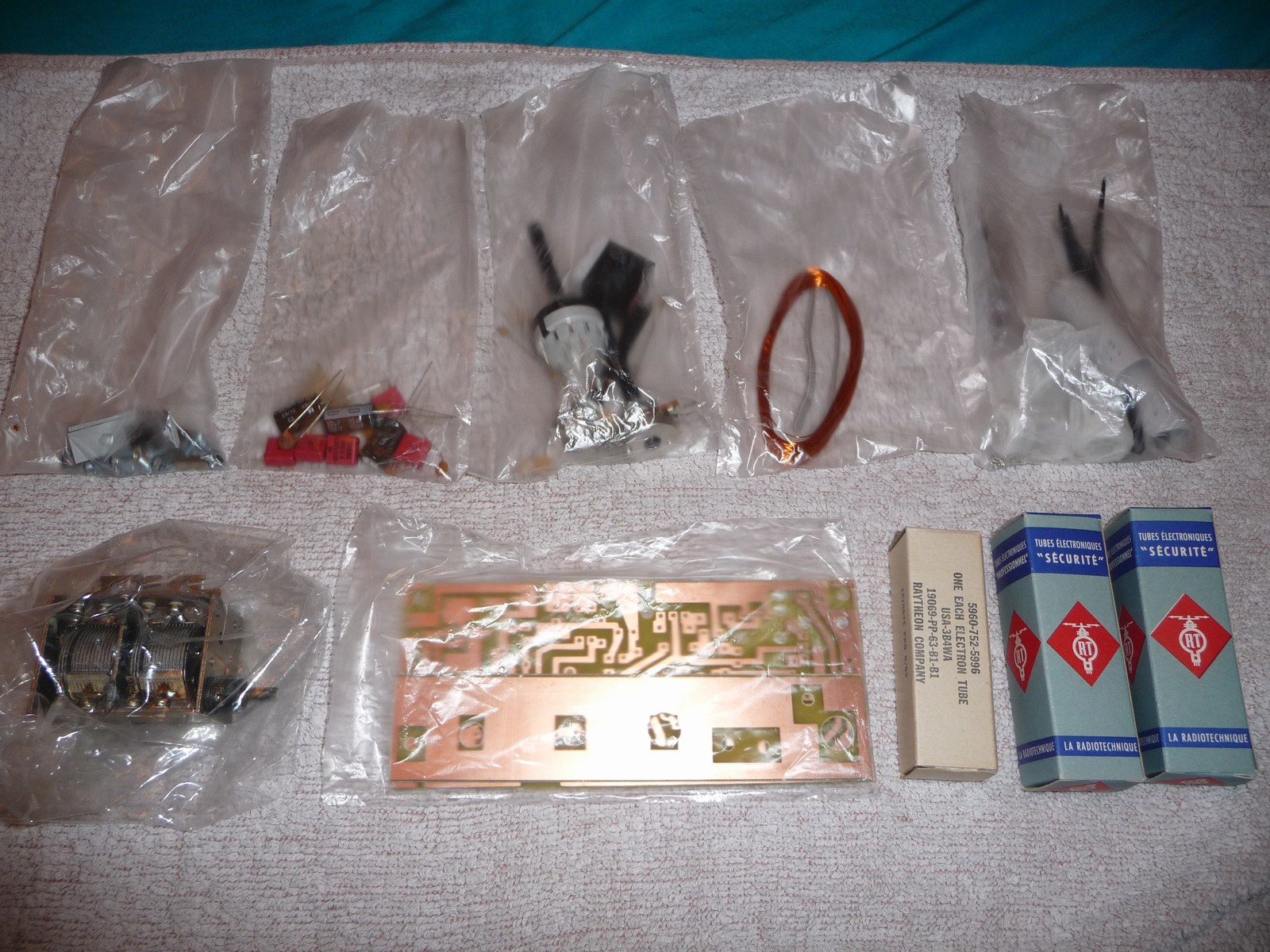 und sehr zufrieden mit dem kleinen Teil bin, sollte nun aber mal etwas "besseres" her... Ein echter 3-Band Empfänger mit Batterieröhren "0V2 für Kurz- und Mittelwelle". Mangels Erfahrung war ich ein wenig skeptisch, ob mit drei Röhren heutzutage noch Lautsprecherempfang möglich ist, aber ich habe trotzdem gekauft. Das Bauen macht mir am meisten Spass, also los gehts: So werden die Teile geliefert: