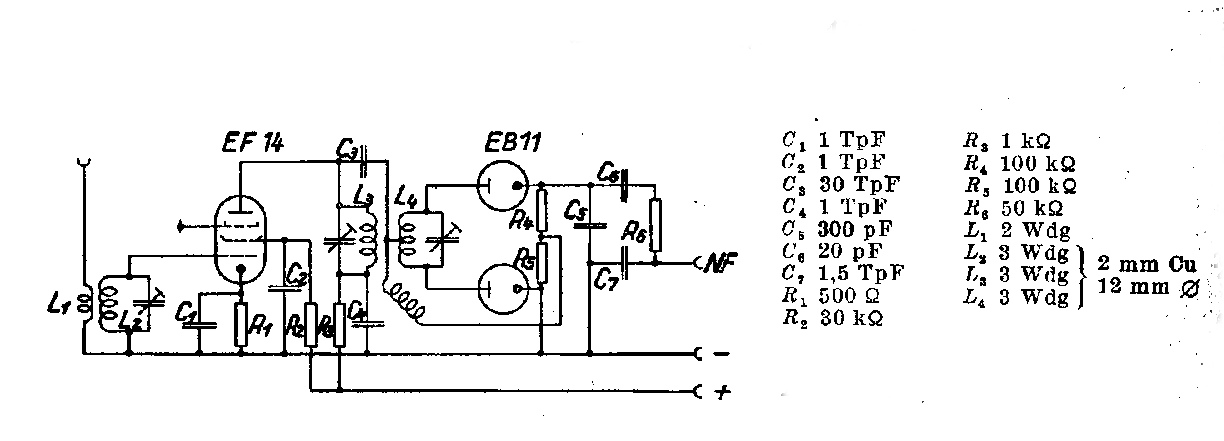 die Elektronik und Computersachen bekommt er von meinem Sohn eingeimpft, ich versuche nur das Interesse in Richtung Radio und Amateurfunk zu lenken. Bisher ist das gut geglückt. In dem Alter kann das Interesse auch schnell umschlagen wenn man keine Herausforderungen bietet, Dein abgebildeter Ecc85 Tuner ist von Aufbau ideal für das Radio. Die Schaltung scheint im Schubert abgelichtet zu sein, der Nachbau machbar. Wenn allerdings ein Forenteilnehmer diesen oben abgebildeten Tuner ohne Verwendung rumliegen hat, würde ich Interesse bekunden.
