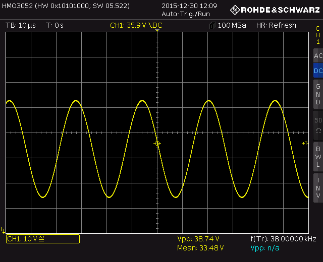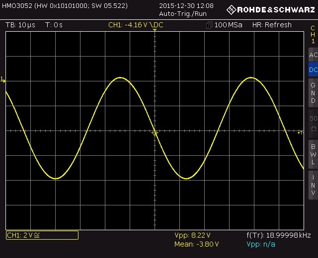 Zum Schluss noch ein paar Oszillogramme für den Fall der Fehlersuche. Das Eingangssignal ist dabei ein 19kHz-Sinus mit 150mV Amplitude.