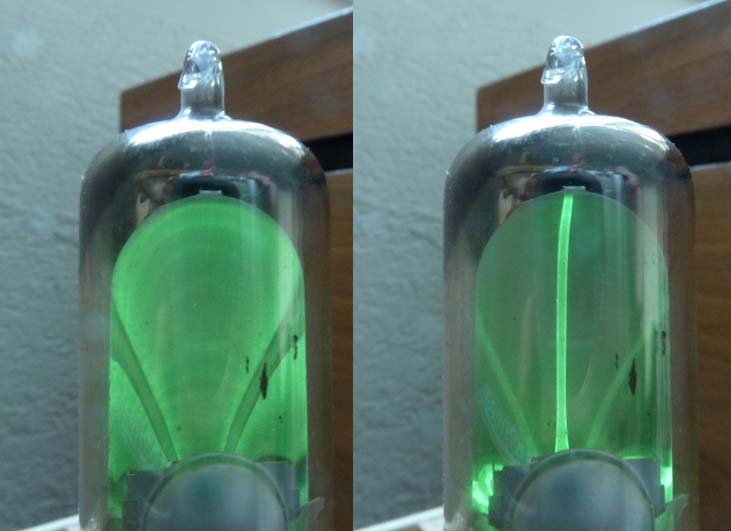 Die EM80 habe ich in meiner Röhrensammlung gefunden, hier macht sie sich gut, auch wenn sie nicht mehr die Hellste ist. Mit der EM80 ist jetzt auch noch eine Valvo-Röhre neben Ultron, Telefunken und Philips vertreten. Als Nächstes mache ich noch das Gehäuse fertig.