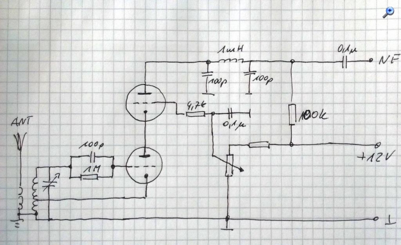 als Fan für das Eco-Audion sehe ich mit Interesse deine Aktivität. Auch ein Eco-Kaskode-Audion hatte ich erfolgreich aufgebaut. Erst mit der vorhandenen Röhre ECC83 und später nach der Beschaffung erfolgte ein Aufbau mit der Röhre ECC88. Da du dir das Limit setzt, eine Anodenspannung von 12V zu verwenden, würde ich dafür die Röhre ECC86 nutzen. Man muß aber die Röhre haben. Auch andere Röhren arbeiten mit kleinen Anodenspannungen, aber nicht optimal. Als Notlösung, vorausgesetzt die Röhre ist im Bestand, könnte ich dir aus Erfahrung die Röhre ECC88 bzw E88CC empfehlen. Auch bei mir gilt der Vorsatz, erst nutzen was man hat.