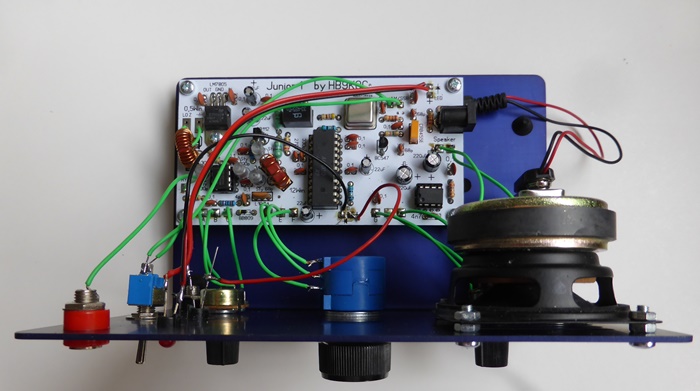 interessant! Bausatz ist bei QRP Project Berlin erhältlich. Der Frequenzbereich soll zwischen 5,9 und 8,1 MHz liegen. Doppelsuper 10,7MHz/468 kHz mit dem IC A4100D aus DDR-Zeiten. Mischer NE612 im Eingang, dann der A4100 und NF-Verstärker LM380. Beschreibung im FA 2/15. Etwas zum Löten - nicht übel.