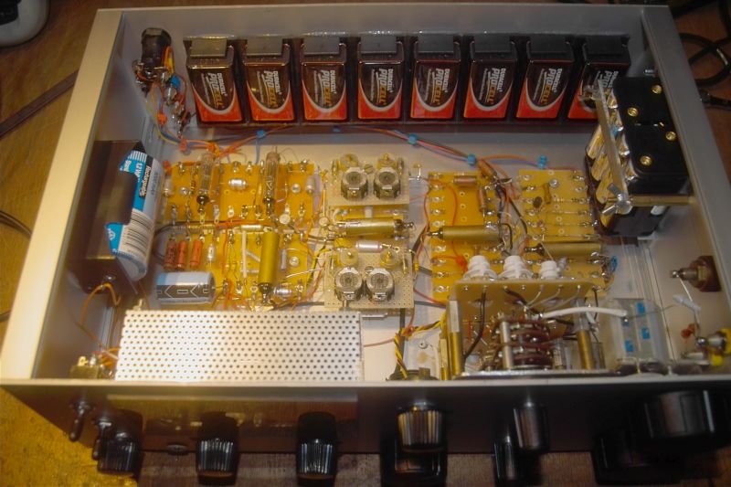 Sehr schön dokumentiert und was eigentlich nur noch fehlt ist ein Stromlaufplan. Vielleicht willst Du ja Deine Idee nicht wirklich in allen Einzelheiten veröffentlichen,...aber für mich fehlt das noch in der umfangreichen Dokumentation. Stark ist ja auch der geringe Heizstrom der russischen Fingerröhren. Ich habe damit auch schon experimentiert und bin auch, trotz etwas höherer Anodenspannung, begeistert. Gerade für den reinen Batteriebetrieb sind diese Röhren eine ausgezeichnete Lösung....überhaupt wenn man über einen einfachen Einkreiser hinausgeht. Der hohe Heizstrom macht Röhrenbatterieprojekte häufig unrealistisch oder unpraktikabel.