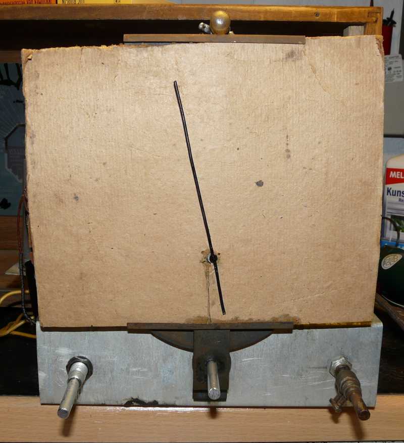 Tja, der Kleine ist mit viel Liebe zum Detail gebaut worden; auch das Chassis ist Eigenbau. Hier wurde einfach von Hand (vermutlich mit Holzstücken und Schraubstock) ein Blech U-förmig gebogen, und unten dann mit 2 Blechstegen verbunden, die mit Alu-Nieten angebracht wurden. Die Ausschnitte und Bohrungen sind sehr sorgfältig gemacht, und wirken auch schon fast industriell. Selbst die Befestigung der Skalenscheibe ist hervoragend ausgeführt: 3 kleine Bleche, mit Schraubloch und einem Stück Tesamoll halten die Scheibe fest an der Front, sodaß auch große Lautstärken keine Vibrationsgeräusche verursachen. Alles in allem eine wunderschöne Arbeit, die anzuschauen und zu hören immer wieder Spaß macht. Ich möchte ihn deshalb auch so erhalten, um damit festzuhalten, was mit einfachsten Mitteln möglich ist, und dem (vermutlich schon verstorbenen) Erbauer sozusagen meinen Respekt zu erweisen. In meinen Augen eine beachtliche Arbeit!