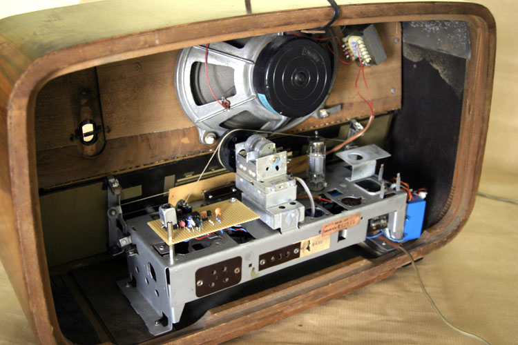 in den letzten paar Tagen hatte ich mal wieder mehr Zeit zum Basteln. Vor einiger Zeit habe ich einige DDR-Röhrenradios bekommen, darunter auch zwei Sekretär von Stern Radio Sonneberg. Äußerlich waren beide noch in gutem Zustand, innerlich aber schon halb verrottet, mit Fehlteilen, verbrannte Bandfilter und ähnliches. Kurzum ich habe aus 2 Radios wieder eines in den (spielenden) Originalzustand versetzen können. Vom Organspender aber war aber nicht mehr viel übrig, es diente daher als Bastelgrundlage.