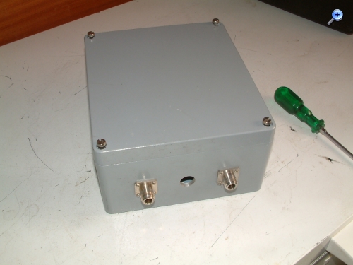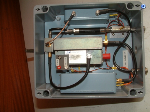2) Vielleicht ein abgesetztes AFU-Transceiver-Endstück zur Montage auf dem Dach an der UHF-SHF-Antenne mit Empfangsvorverstärker und Senderendverstärker. Stromversorgung kommt über das Koaxkabel zusammen mit der HF (über DC-Weiche). DC über Koax deshalb, weil ich keine DC-Strombuchsen sehe.