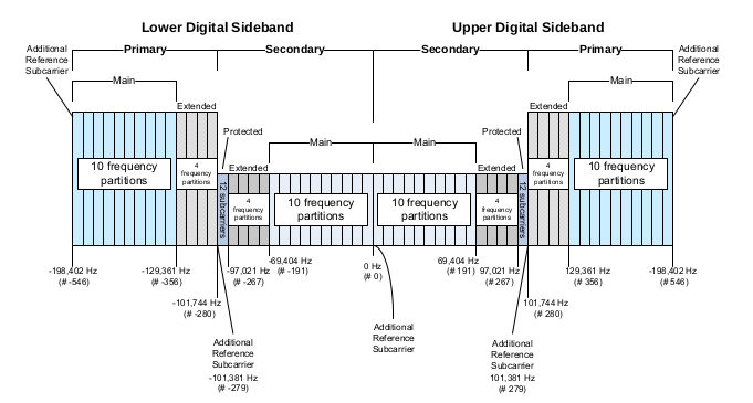 wird im HD-Radio Verfahren der Firma iBiquity das Frequenzspektrum auf beiden Seitenbändern erweitert.