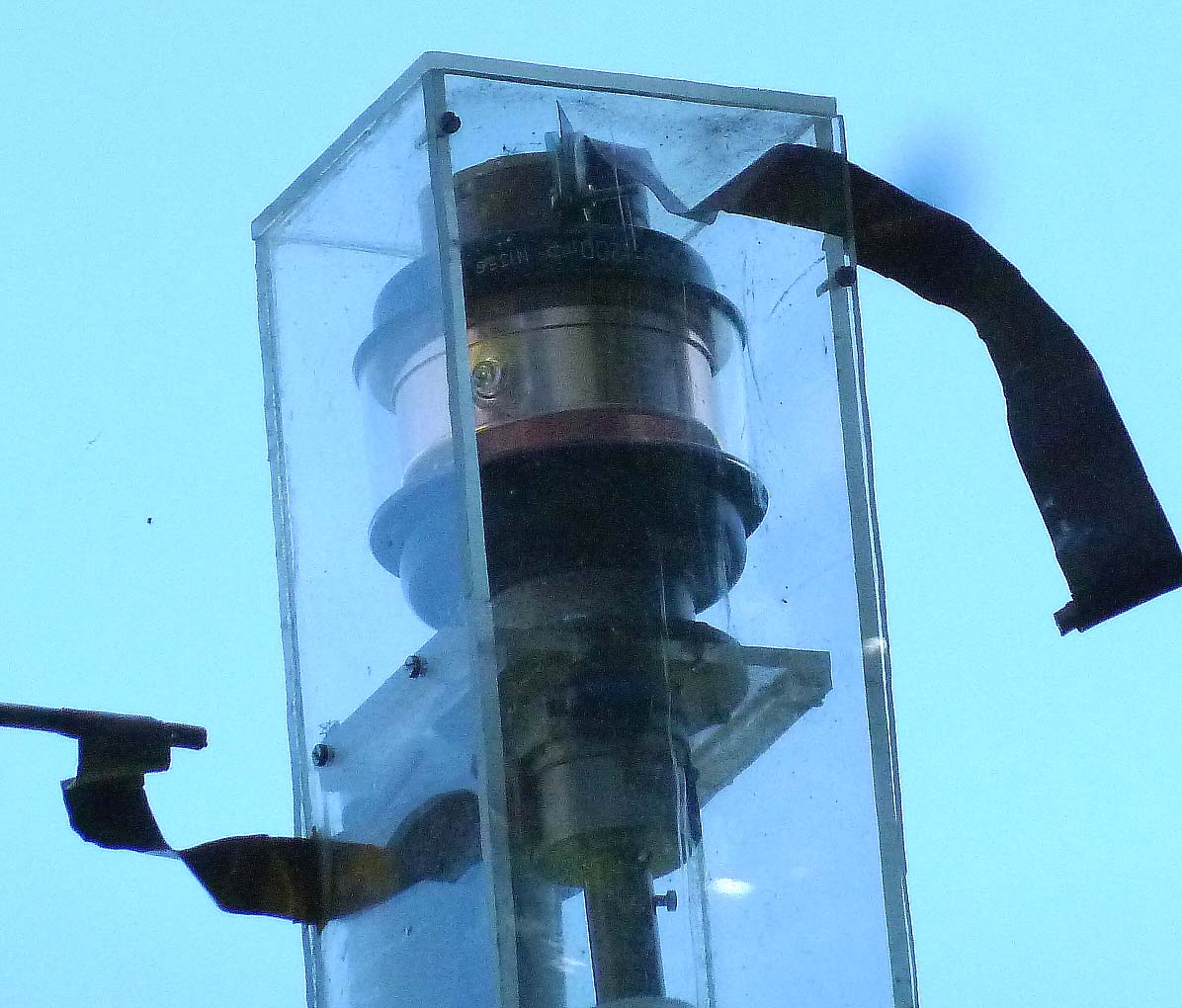 die Loop wird noch grösser, ich denke so an 2..2.5m Durchmesser, damit sie auch auf 160m noch geht, auf 80m wird sie dann nach Rechnung etwa 8dB besser, was durchaus spürbar ist. Der Vakuum-Drehko ist sich die frische Luft schon gewöhnt, ganz am Anfang meiner Amateurfunk-Karriere (an einem anderen Ort) war er schon 2 Jahre in einer magnetischen Loop beschäftigt. Wichtig ist natürlich, dass man mit den Anschlüssen keinen mechanischen Stress auf das Glas ausübt. Die Seite mit dem Antrieb hat einen grossen Flansch, der neben dem elektrischen Kontakt auch für die mechanische Befestigung dient. Der Anschluss auf der anderen Seite muss dann aber mit einem dünnen Blechstreifen erfolgen, damit hier keine Kraft ausgeübt werden kann.