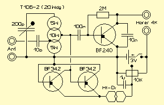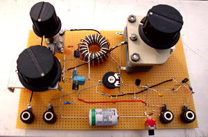 Bezugnehmend auf bisherige Experimente ist es nun gelungen, eine regelbare Enddämpfung des Schwingkreises einzustellen. Es ist möglich, die Signale bis zum Schwingeinsatz zu regeln. Schon im experimentellen Aufbau, siehe Bild, arbeitet die Schaltung im Kurzwellenbereich einwandfrei. Für Telegrafie- und Einseitenbandempfang könnte eine Feinregelung sinnvoll sein, was sich bei der Einstellung von Radiostationen als nicht nötig erwies.