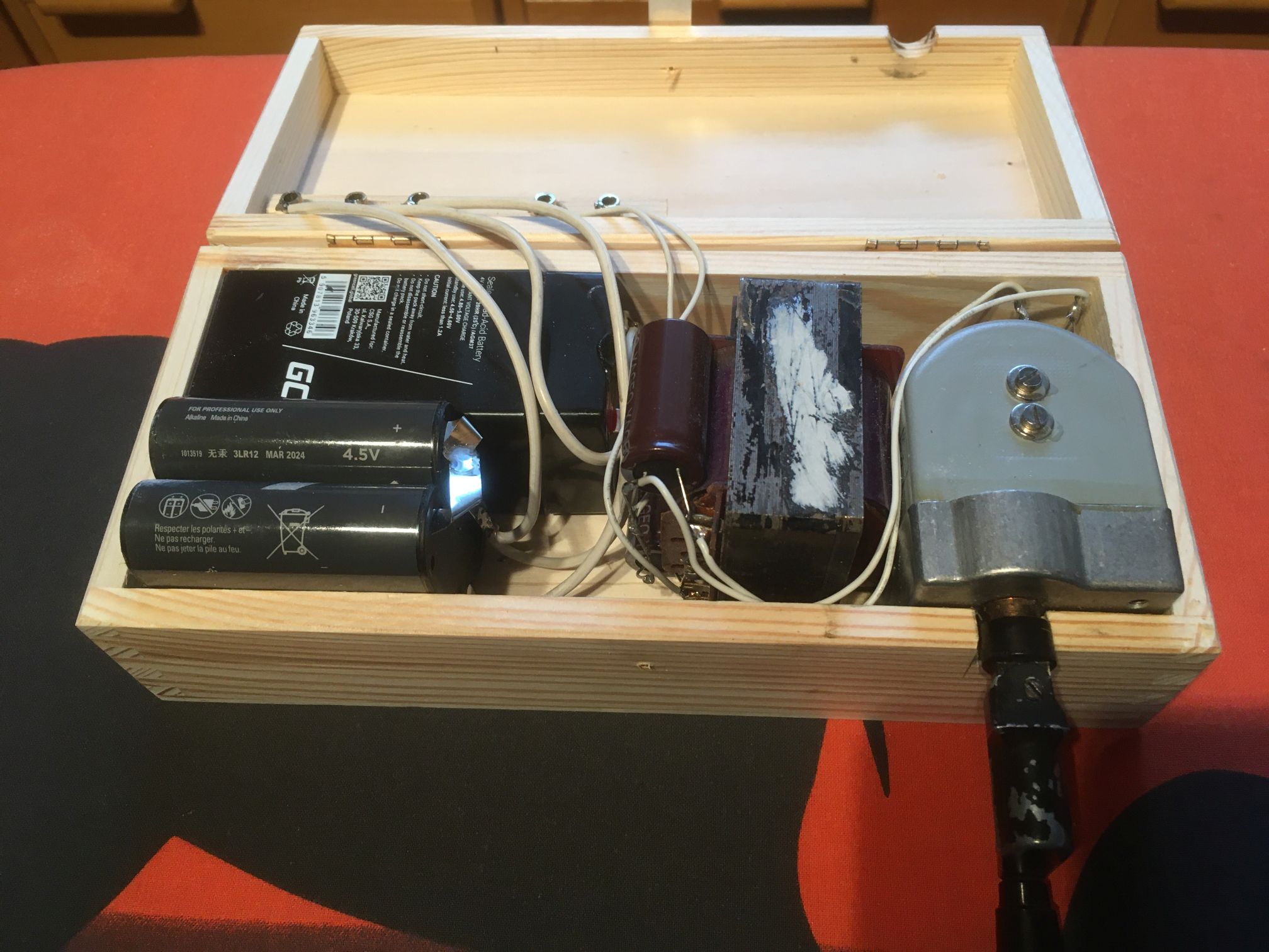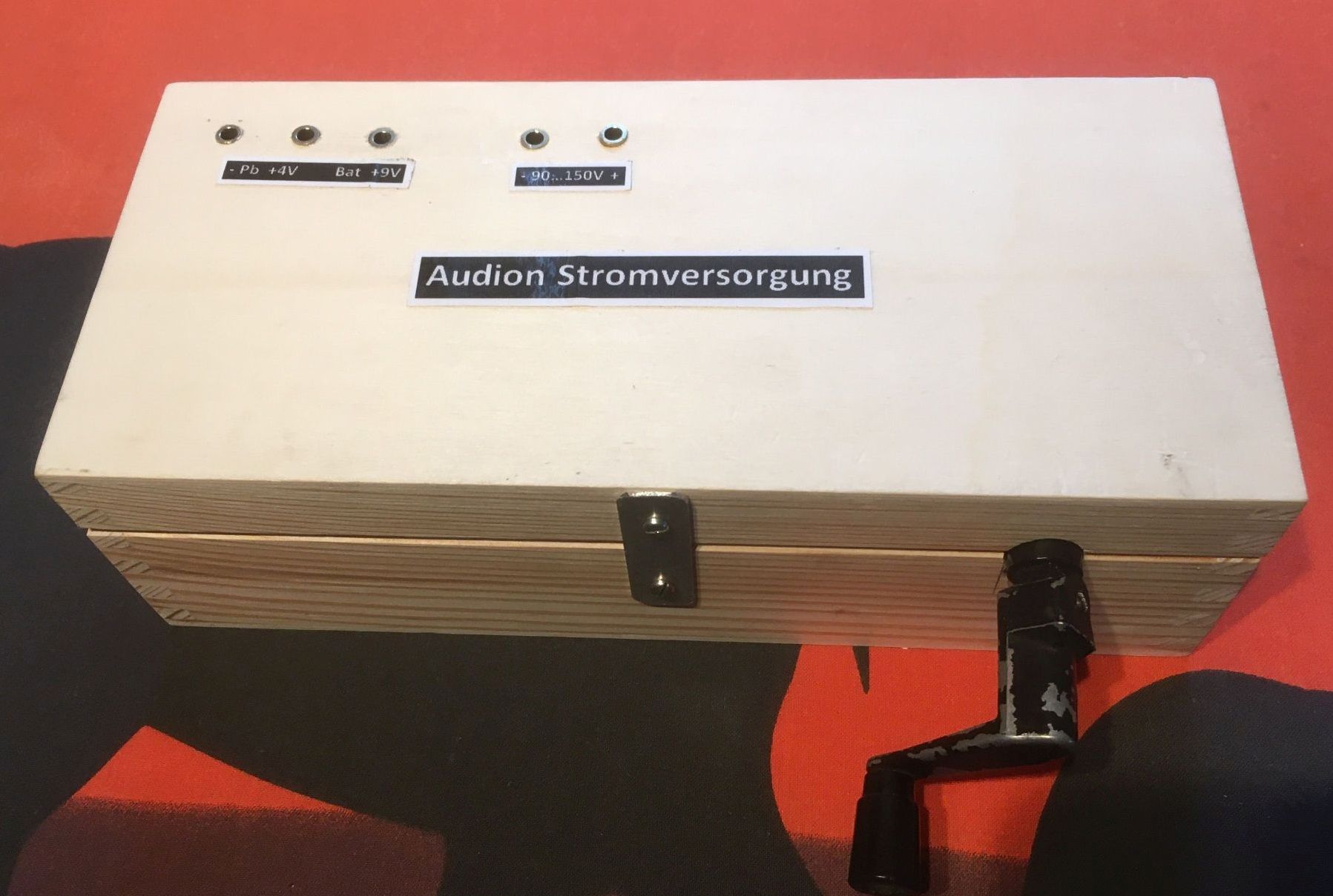 Die Kurbelanordnung spielt so gut, dass ich sie in ein Gehäuse gesetzt habe. Ein Bleigelakku 4V/4Ah passte auch noch rein, sodass ich damit auch eine 3NFB (Nachbau RO433) bedarfsweise speisen kann.