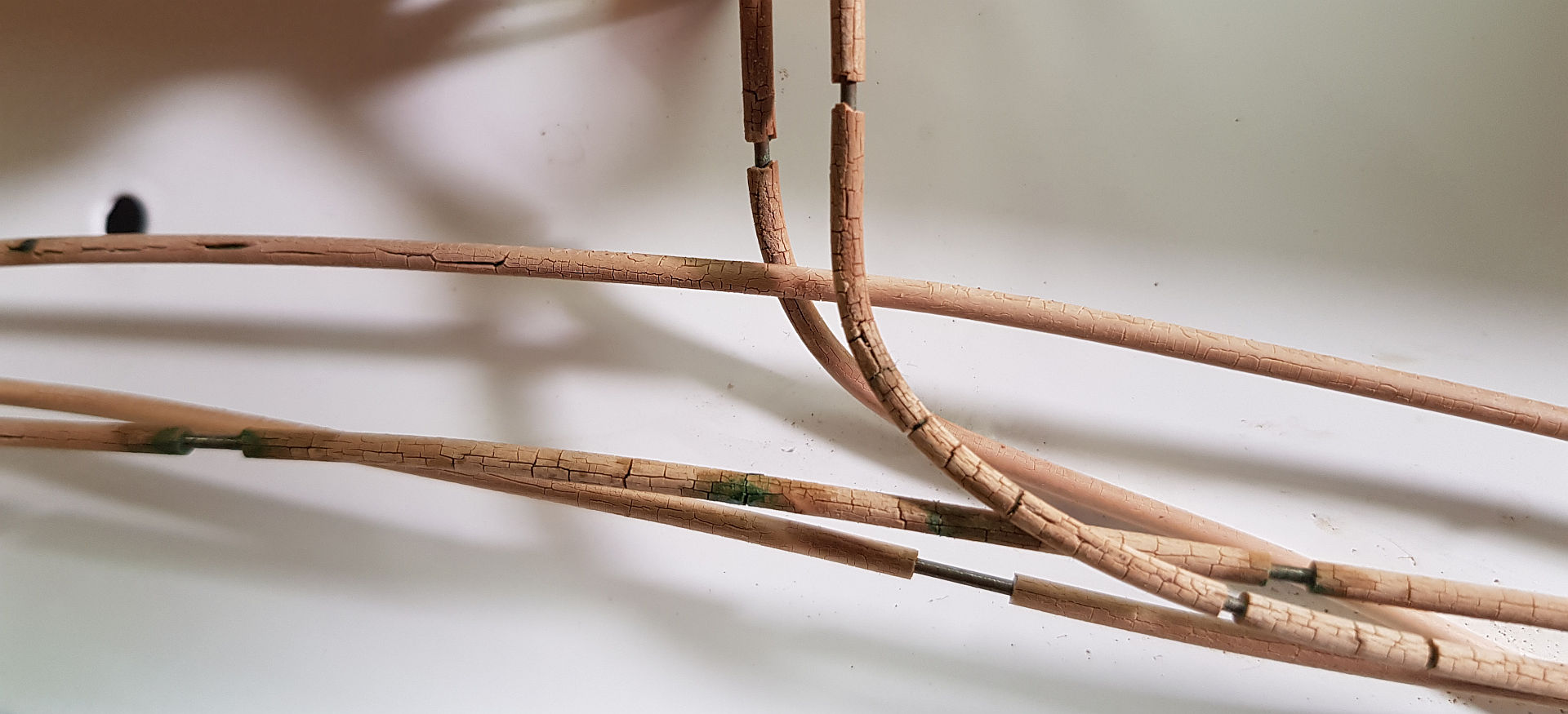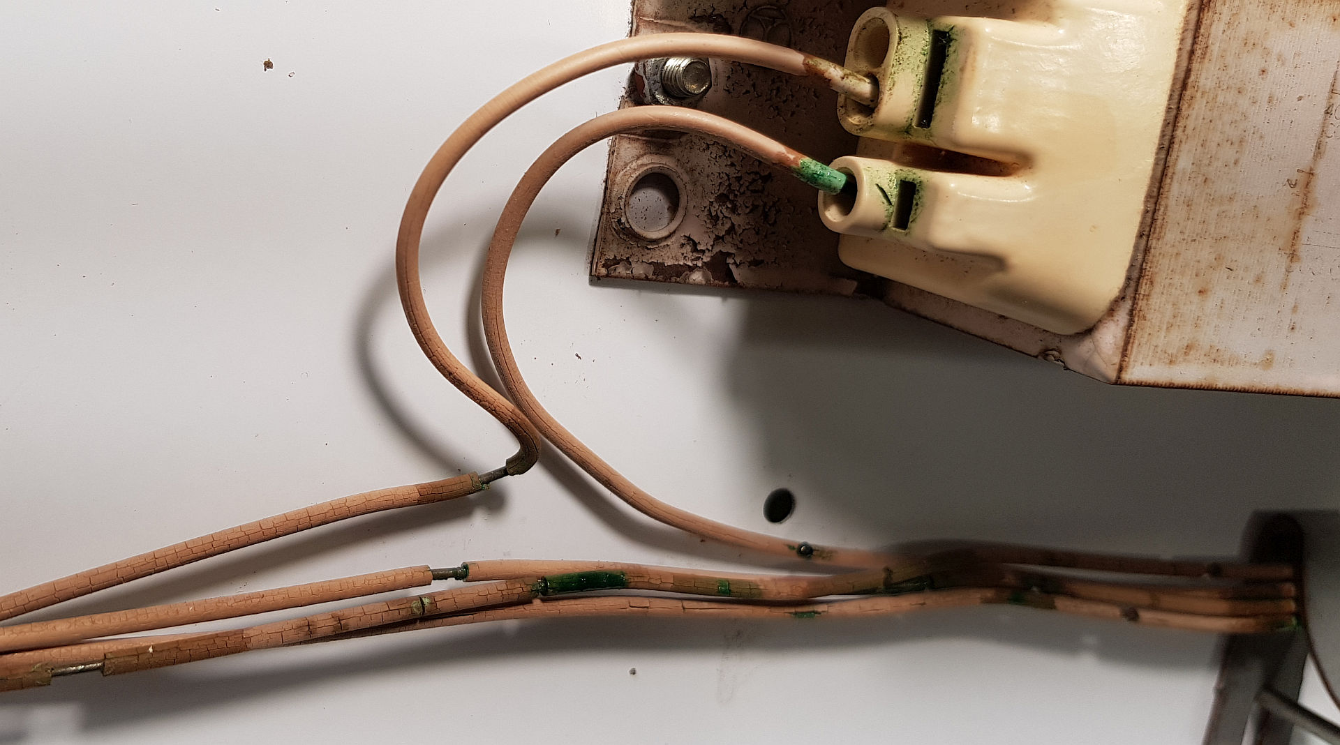 Hallo, kenne ich auch von Netzstromleitungen bei alten Radiogeräten und Tonbandgeräten. Der Kunststoff wird über Jahrzehnte hart und bricht beim Biegen. Für den Laien sehr gefährlich. Mit Grüßen Sven