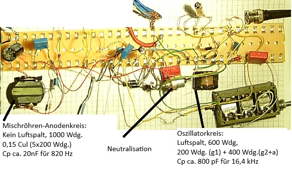 Verbindet man g1 der Oszillator- und g1 der Mischröhre mit kleinem Trimmer, dann lässst sich die Oszillatorspannung auf dem Steuergitter neutralisierten.