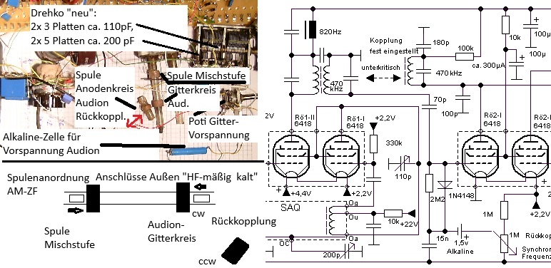 Für AM ermöglicht dann eine Rückkopplung der Audion-Röhre auch SSB-Empfang und Verbesserung der Selektion des Bandfilters. Für SAQ hat sich die Rückkopplung als nicht zweckmäßig erwiesen.