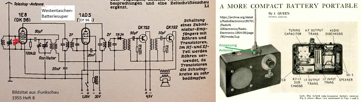 "Pentodenmischung im Reisesuper" lautet ein ausführlicher Artikel im Heft 15 von 1955, man ist da beim basteln zum Glück nicht so ganz ohne "Futter".
