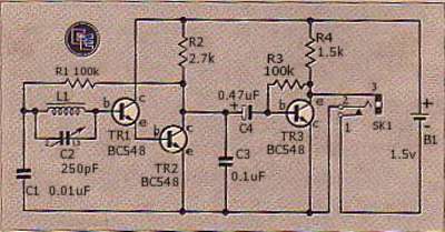 ich habe im Internet diesen kleinen 3 Transistor Empfänger gefunden. Ich habe alle Teile im Hause, außer den Transistoren, da habe ich BC550C, aber die gehen auch denke ich. Ich bin gespannt, vielleicht kann das Radio endlich den LM386 Verstärker ansteuern.
