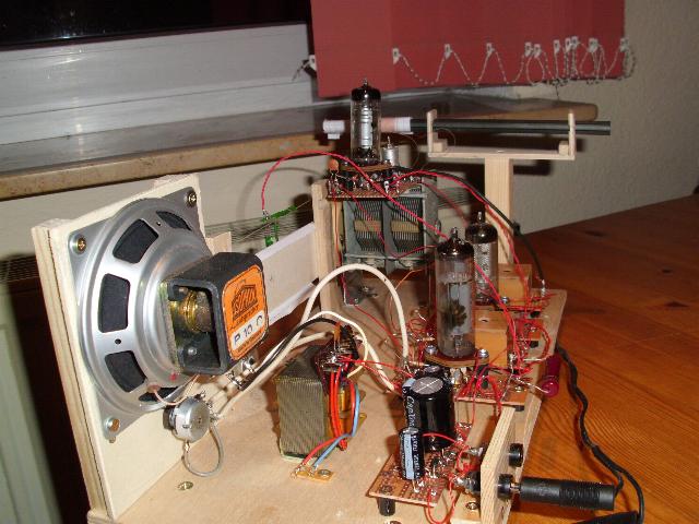 Ich finde diese Eigenbau Geräte machen den grössten Spass. Ich habe mich bisher nur mit Audions beschäftigt, da ich mit den Oszillator- und Filterspulen Berechnungen nicht so vertraut bin. Aber , angeregt durch Dein Beispiel, gehe ich es nun doch in balder Zukunft an, so etwas zu versuchen. Ich habe mir dazu einen kompletten amerikanischen 12 V ( Auto )Röhrensatz besorgt.
