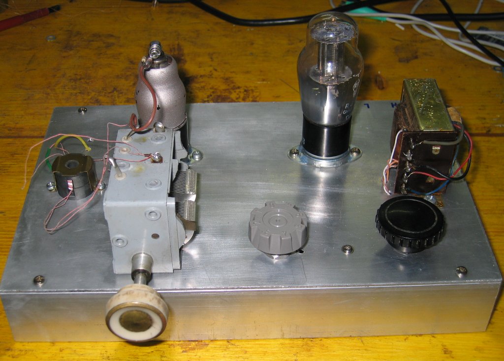 Erste Empfangsversuche waren erfolgreich.Die Endstufe erreicht leider nicht ganz die Daten die ich erhofft habe.Bei einer gemütlichen Anodenspannung von 95 Volt stellt sich ein Anodenstrom von etwa 4 mA ein.Es reicht aber bei stärkeren Sendern für Zimmerlautstärke aus.