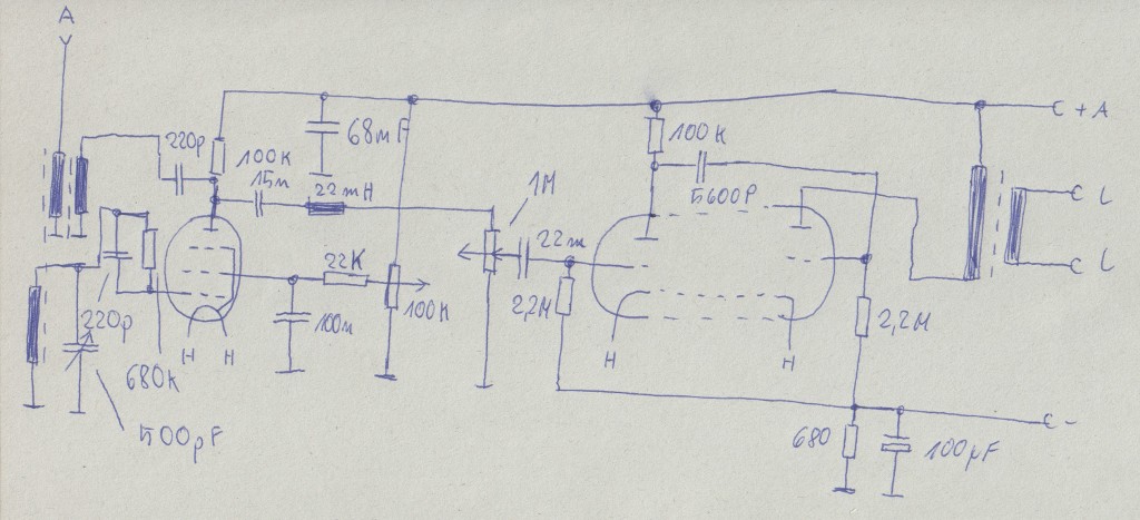 Ich habe mir gedacht, die R207 als Audion, und die R212 als Vorverstärker und Endstufe zu schalten.Von der Anpassung müsste eigentlich ein Trafo für eine EL95 recht Gut passen.Einen ersten Eindruck vom Chassis habe ich hier hoch geladen.