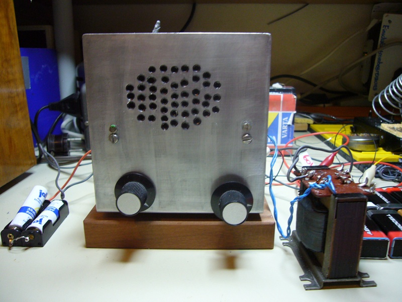 Sehr guter Empfang, sauber und Trennscharf. Seht gute Lautstärke, die mich schon sehr überrascht hat. Bei über 80 % aufgedrehter Lautstärke kommen Verzerrungen. Die 60 Volt kommen aus den 9 Volt Blöcken im Bild. Jede Menge Sender die noch bestimmt werden müssen.