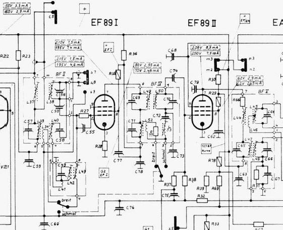 ich will ja seit einigen Monaten ein Superhet für Mittelwelle aufbauen. Beim Durchsehen alter Superhet-Schaltungen ist mir folgender Röhrensatz beim Nordmende Othello 58, Tannhäuser 58, aufgefallen: ECH81 EF89 EF89 EABC80 ECC82 EL84 EL84. Ungewöhnlich sind die zwei EF89. Bringt eine zusätzliche ZF-Stufe wirklich so viel mehr auf Mittelwelle? Die NF-Stufe will ich nicht in Gegentakt aufbauen. Mir geht es nur um eine möglichst gute Trennschärfe, nicht um Lautstärke.