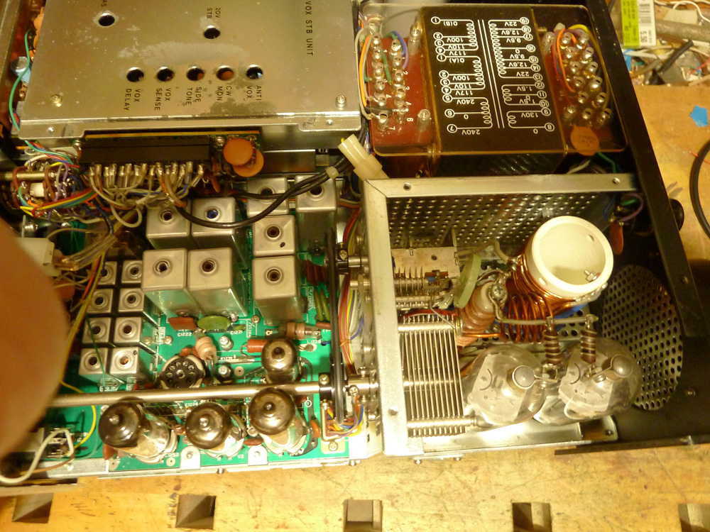 Schön und heute aus der Mode gekommen: der Pi-Filter-Ausgang; kam mir bei meinen damaligen (1976 bis 1981) Antennenverhältnissen in Braunschweig sehr entgegen. Die Antenne war ein schräger 30-m-Langdraht auf dem Dach einer Wohnanlage, von 1 auf 3 m Höhe über Kies-Dach ansteigend mit horizontal darunter ausgelegtem Gegengewicht; Abspannung an zwei liegenden Traktor-Rädern mit angeschraubten "Rohrmasten". Dieses vertikale spitzwinklige V wurde ohne weitere Tricks über 15 m RG213 gespeist, die dann durch den Luftschacht unseres fensterlosen Badezimmers zum Shack führten. Diese abenteuerliche Anordnung brachte mir WACs auf allen Bändern außer 160 m und 80 m.