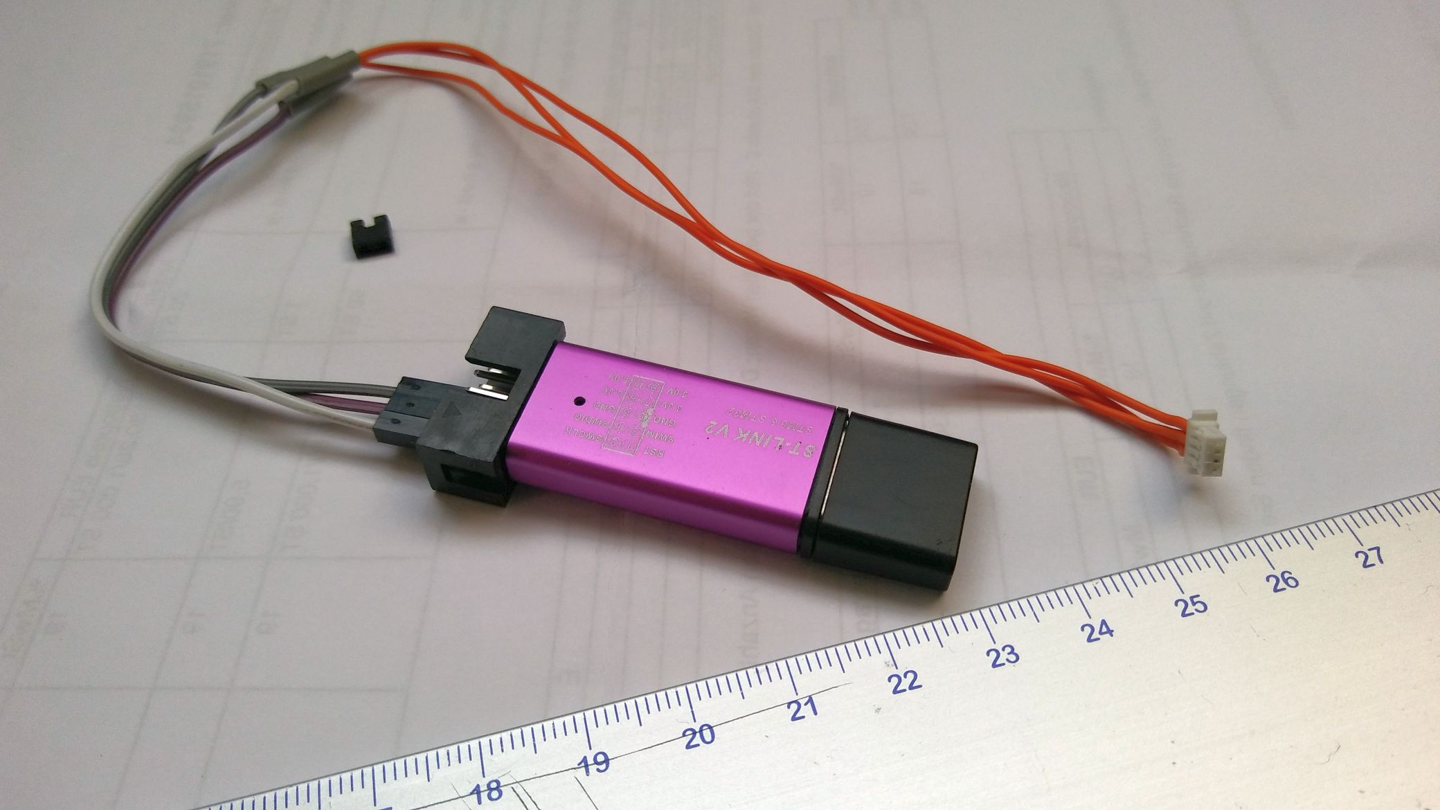 Zum Programmieren braucht man neben dem kostenlosen Programm ST-Link den zugehörigen Adapter (China unter 4 Euro) und den eher seltenen Stecker mit Kontakten. Stecker und Kontakte könnte ich in kleiner Zahl noch abgeben.