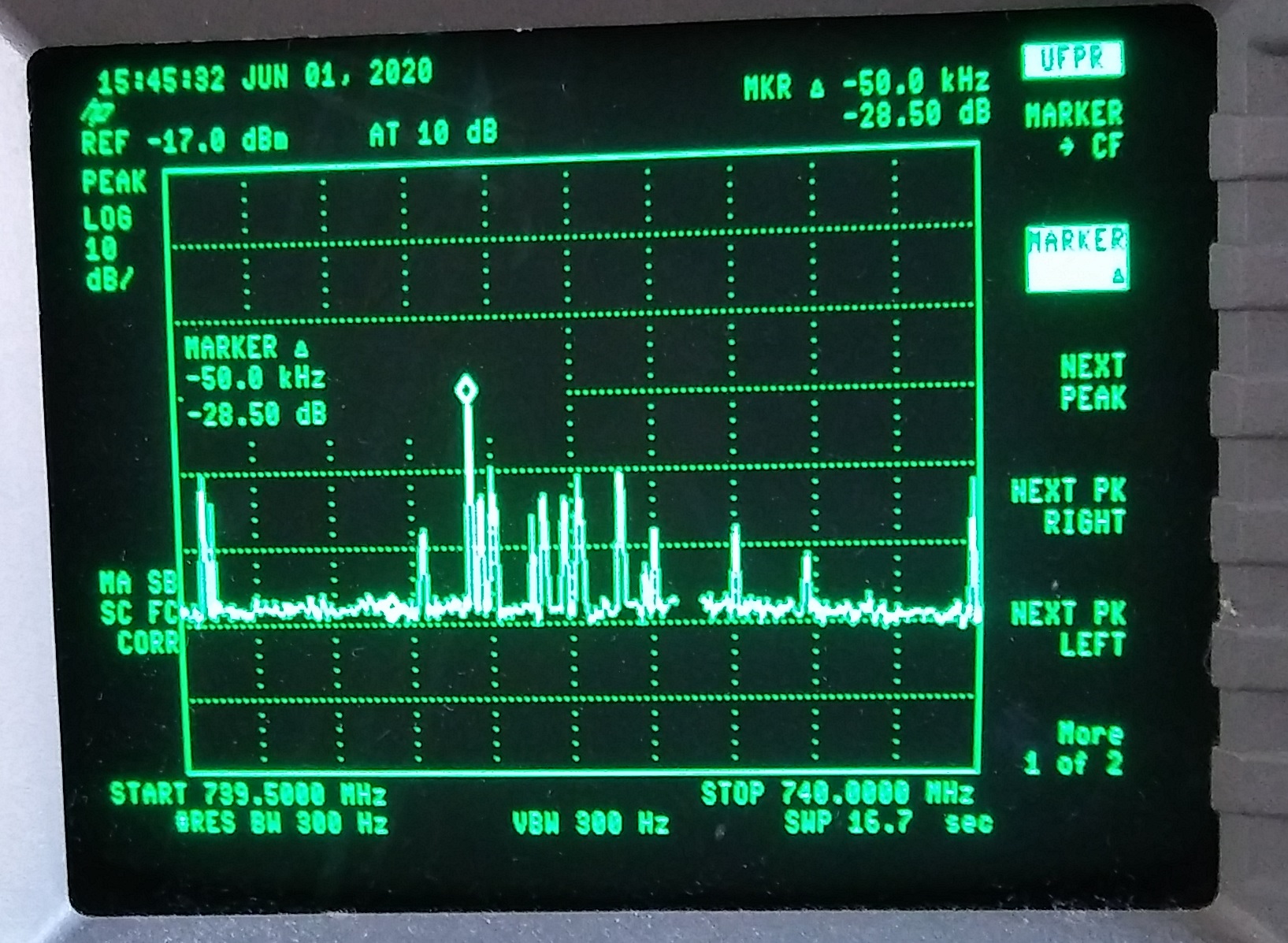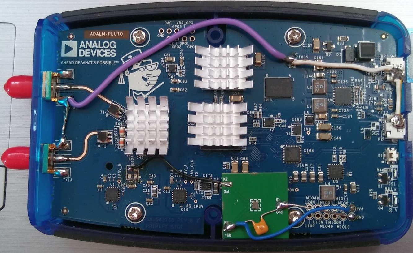 Noch einmal zur Leistung: Es wird empfohlen, 2W der Senderantenne zuzuführen. Schon bei nur wenigen Metern Koaxkabel muss man aber davon ausgehen, dass mindestens die Hälfte der Leistung auf dem Kabel verloren geht. Diese Leistung aus der CDMA-Endstufe zu beziehen ist zwar kein Problem, aber der Umbau braucht auch noch seine Zeit. Wahrscheinlich werde ich einen zweiten Adalm-Pluto an der Dummyload über ein 50dB Dämpfungsglied als Spektrumanalysator anschliessen, denn mein hp geht nicht über 2GHz hinaus.